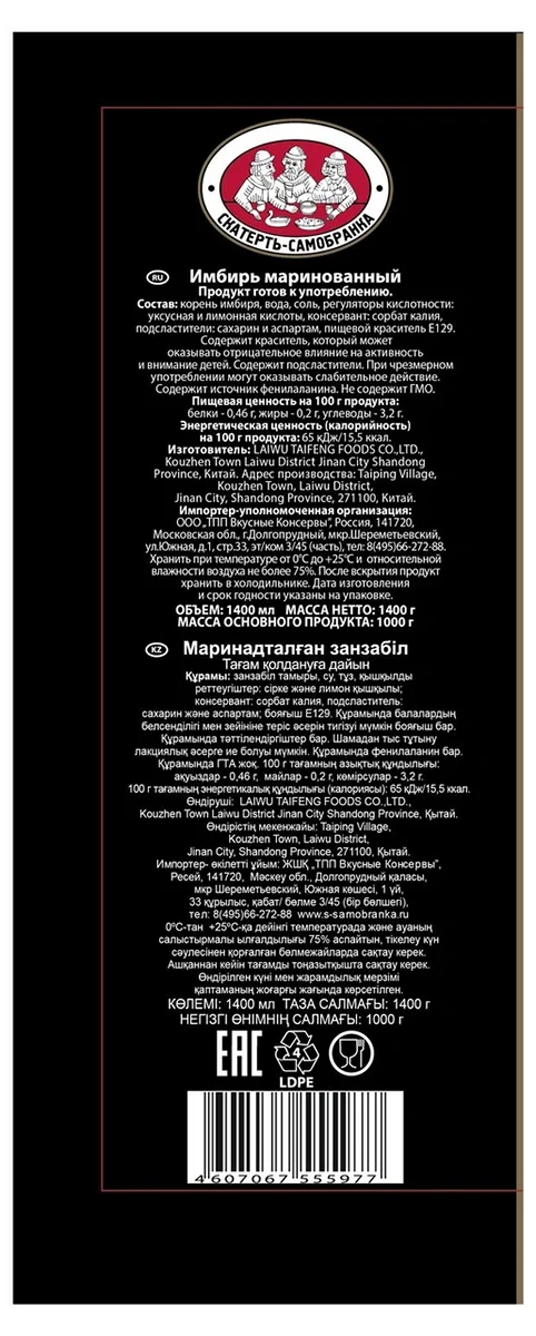 Имбирь Скатерть-Самобранка маринованный, 1.4кг