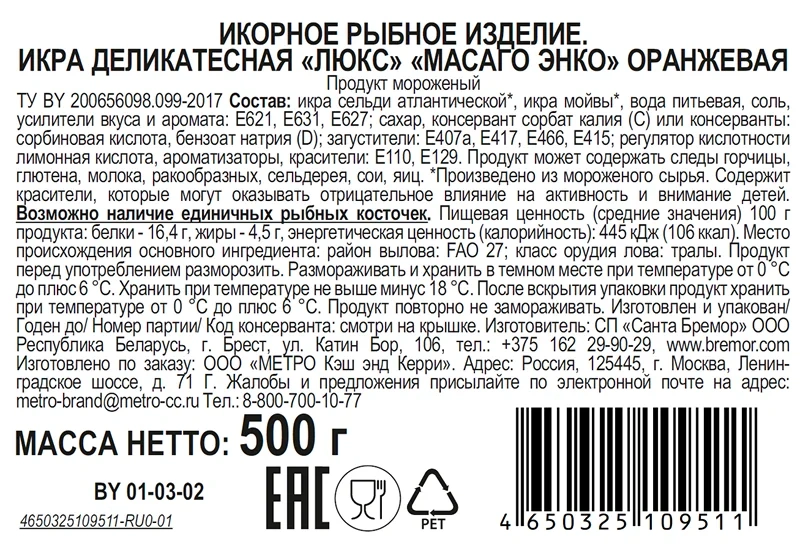 aro Икра масаго Энко оранжевая замороженная, 500г