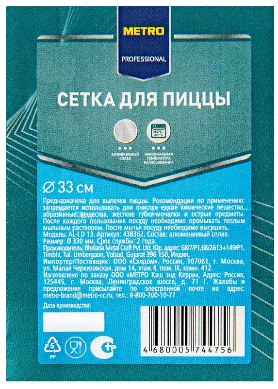 METRO PROFESSIONAL Сетка для пиццы алюминий, 33см