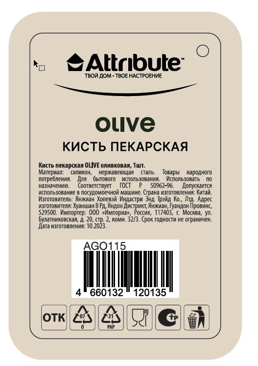 Кисть кулинарная Attribute Olive, 21см