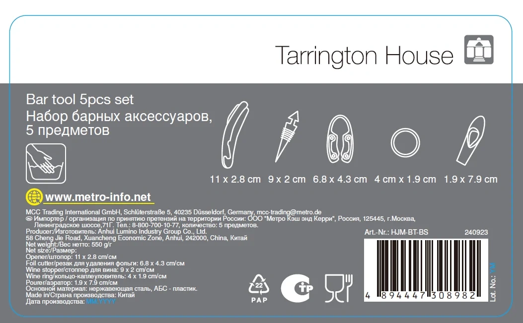 Tarrington House Набор барных аксессуаров в бутылке 5 предметов
