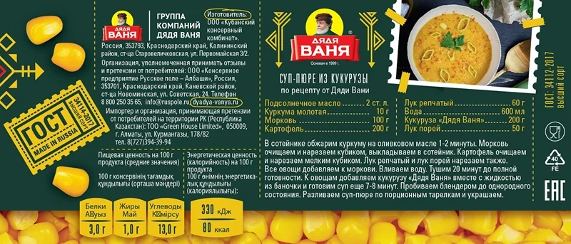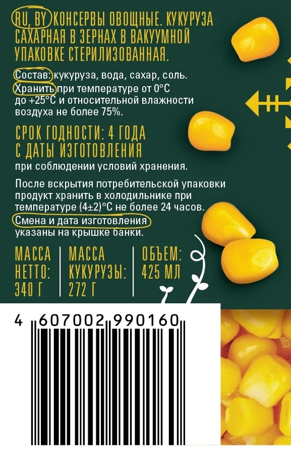 Кукуруза сахарная в зернах - Сладкая молочная кукуруза изготавливается только из свежего сырья по мировым стандартам. Без консервантов. Производится только из свежего сырья по мировым стандартам, без консервантов. Сочная, с тонкой кожицей, имеет особенный, ярко выраженный вкус. Отличный вариант для простых ностальгических рецептов. Сочетается с мясными и овощными блюдами.