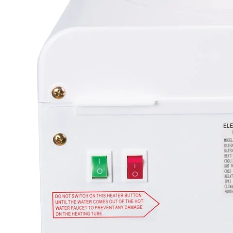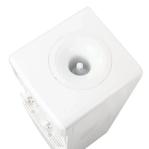 Вода нагревается с помощью ТЭНа мощностью 550 Вт, что позволяет достичь температуры 90 °С за считанные минуты. Модуль электронного охлаждения мощностью 70 Вт обеспечивает поддержание температуры холодной воды на уровне 10 °С. Кулер предназначен для напольного размещения и имеет 2 крана типа 'нажим кружкой', а также защиту от протечек воды. Материал корпуса представляет собой сочетание металла и пластика. Для использования необходимо поместить бутыль в специальное отверстие в верхней части диспенсера. Перед первым использованием необходимо слить около 1 л воды, чтобы очистить накопительный бак и трубки от скопившейся производственной пыли. Для нагревания требуется в разы меньше электроэнергии, чем для нагревания самого обычного электрического чайника. Благодаря тому, что высокая температура воды в кулере поддерживается постоянно, больше не нужно будет ждать, пока он нагреется, что особенно важно для крупных компаний с большим количеством сотрудников и посетителей.