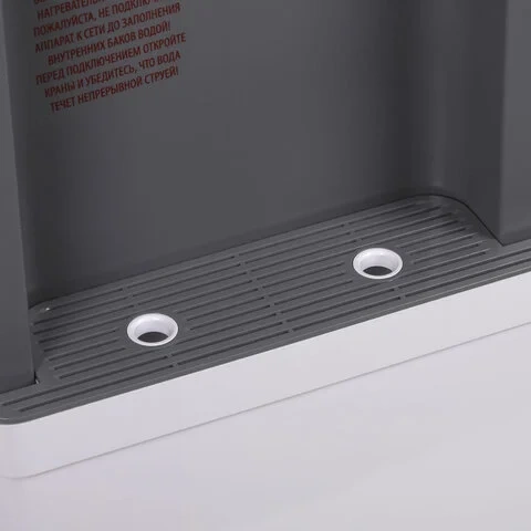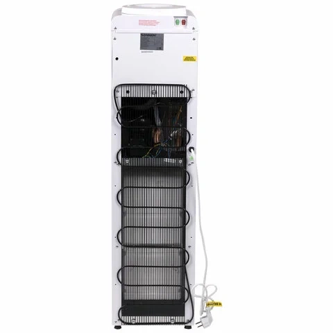 Вода нагревается с помощью ТЭНа мощностью 420 Вт, что позволяет достичь температуры 90°С за считаные минуты. Компрессорное охлаждение мощностью 85 Вт обеспечивает поддержание температуры холодной воды на уровне 10°С. Кулер предназначен для напольного размещения и имеет 2 крана типа 'клавиша', а также защиту от протечек воды.