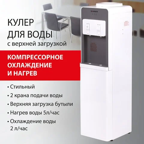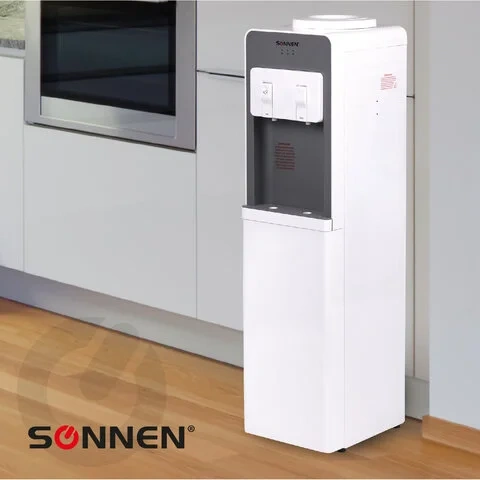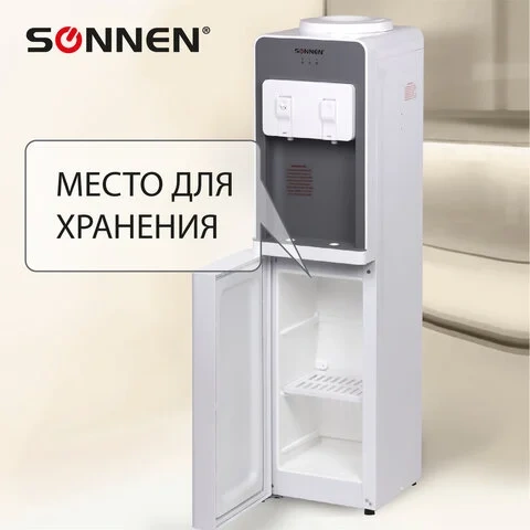 Кулер для воды SONNEN FSC-02BA, напольный, НАГРЕВ/ОХЛАЖДЕНИЕ КОМПРЕССОР, шкаф, 2 крана, серый, 45541