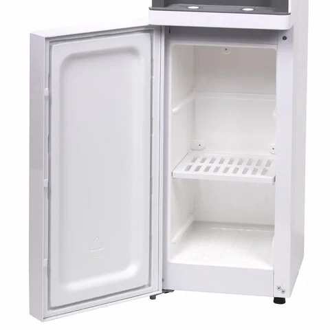 В нижней части корпуса кулера находится шкафчик для хранения объемом 12 л без функции нагрева/охлаждения. Для использования кулера необходимо поместить бутыль в специальное отверстие в верхней части диспенсера. Перед первым использованием необходимо слить около 1 литра воды, чтобы очистить накопительный бак и трубки от скопившейся производственной пыли. Для нагревания требуется в разы меньше электроэнергии, чем для нагревания самого обычного электрического чайника. Благодаря тому, что высокая температура воды в кулере поддерживается постоянно, больше не нужно будет ждать, пока он нагреется, что особенно важно для крупных компаний с большим количеством сотрудников и посетителей.
