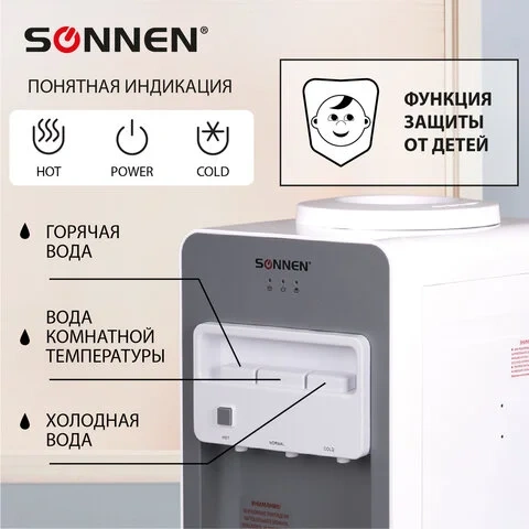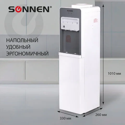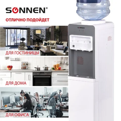 Кулер для воды SONNEN FSC-03BA, напольный, НАГРЕВ/ОХЛАЖДЕНИЕ КОМПРЕССОРНОЕ, 3 крана,серый, 455417