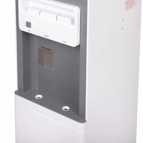 Вода нагревается с помощью ТЭНа мощностью 420 Вт, что позволяет достичь температуры 90 °С за считанные минуты. Компрессорное охлаждение мощностью 85 Вт обеспечивает поддержание температуры холодной воды на уровне 10 °С. Кулер предназначен для напольного размещения и имеет 3 крана типа 'клавиша', а также защиту от протечек воды.