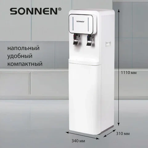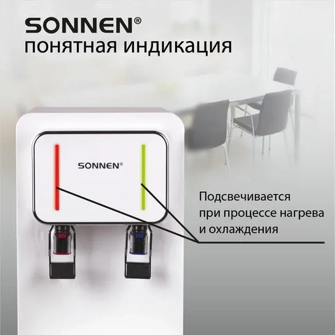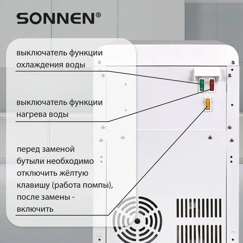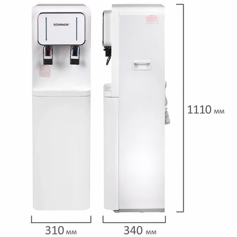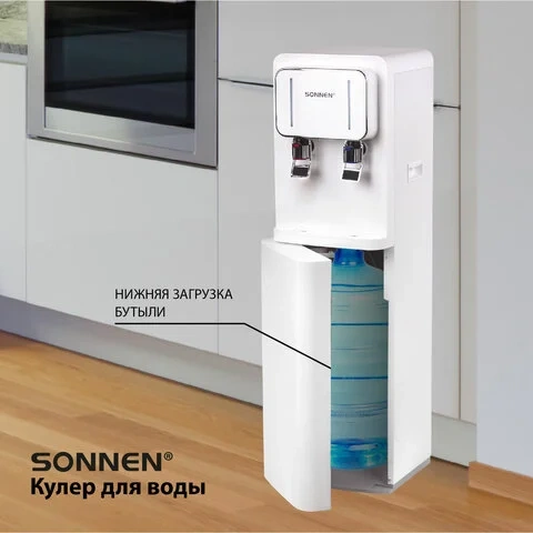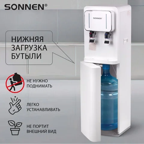 Кулер для воды SONNEN FSE-02BW, напольный, нагрев/охлаждение, НИЖНЯЯ ЗАГРУЗКА, 2 крана, белый, 45617