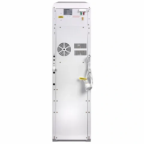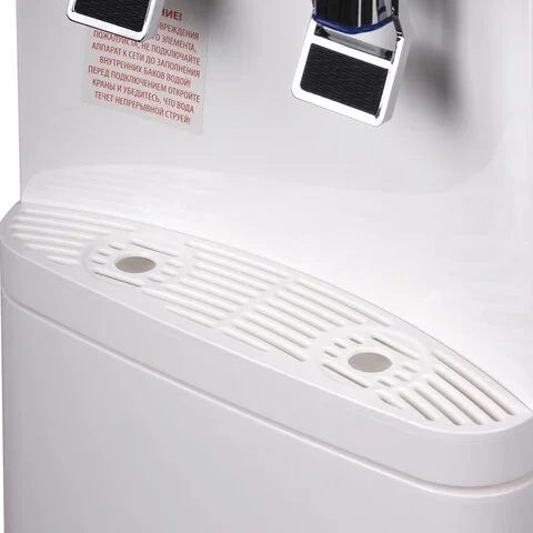 Вода нагревается с помощью ТЭНа мощностью 550 Вт, что позволяет достичь температуры 95 °С за считаные минуты. Модуль электронного охлаждения мощностью 75 Вт обеспечивает поддержание температуры холодной воды на уровне 15 °С. Благодаря тому, что высокая температура воды в кулере поддерживается постоянно, больше не нужно будет ждать, пока он нагреется, что особенно важно для крупных компаний с большим количеством сотрудников и посетителей. Кулер предназначен для напольного размещения и имеет 2 крана для подачи горячей и холодной воды.