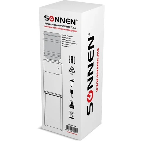 Кулер для воды SONNEN FSE-02SA, напольный, НАГРЕВ/ОХЛАЖДЕНИЕ ЭЛЕКТРОННОЕ, 2 крана, белый, 455414