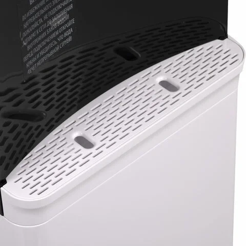 Вода нагревается с помощью ТЭНа мощностью 420 Вт, что позволяет достичь температуры 90°С за считаные минуты. Модуль электронного охлаждения мощностью 65 Вт обеспечивает поддержание температуры холодной воды на уровне 15°С. Кулер предназначен для напольного размещения и имеет 2 крана типа 'клавиша', а также защиту от протечек воды.