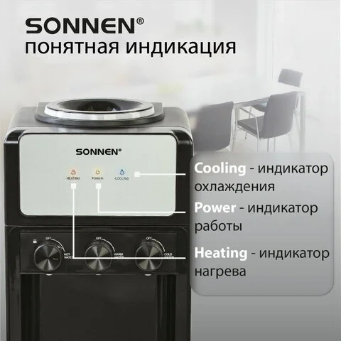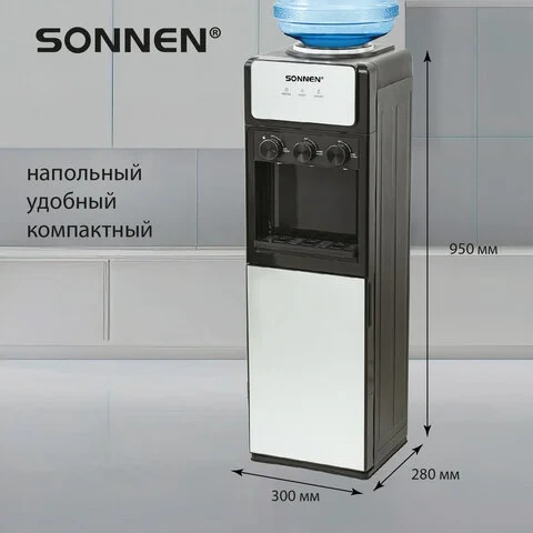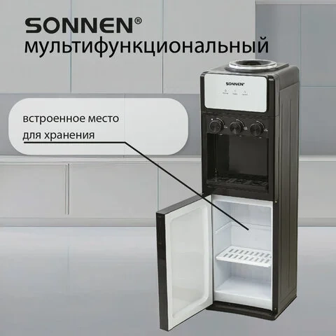 Кулер для воды SONNEN FSE-03Ri, напольный, НАГРЕВ/ОХЛАЖДЕНИЕ ЭЛЕКТРОННОЕ, 3 крана, шкаф, 455743
