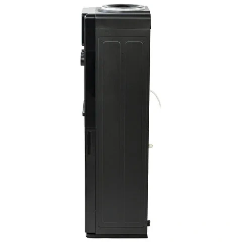 Устройство изготовлено из прочных и безопасных материалов. Корпус выполнен из высококачественного пластика с металлическими сторонами по бокам и стеклянной панелью на передней стороне устройства. Кулер с верхней загрузкой бутыли оснащен шкафчиком в нижней части корпуса.
