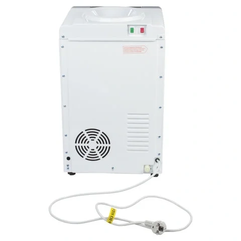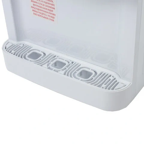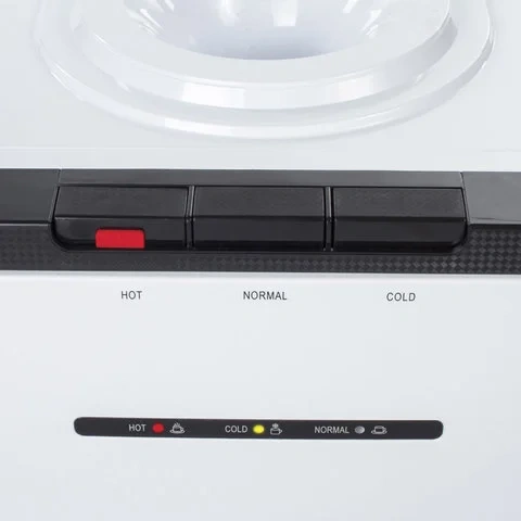 Вода нагревается с помощью ТЭНа мощностью 420 Вт, что позволяет достичь температуры 90 °С за считанные минуты. Модуль электронного охлаждения мощностью 75 Вт обеспечивает поддержание температуры холодной воды на уровне 10 °С. Кулер предназначен для настольного размещения и имеет 3 крана типа 'нажим рукой', а также защиту от протечек воды. В данной модели предусмотрена дополнительная клавиша для раздачи воды комнатной температуры. Для использования необходимо поместить бутыль в специальное отверстие в верхней части диспенсера. Перед первым использованием необходимо слить около 1 л воды, чтобы очистить накопительный бак и трубки от скопившейся производственной пыли. Для нагревания требуется в разы меньше электроэнергии, чем для нагревания самого обычного электрического чайника. Благодаря тому, что высокая температура воды в кулере поддерживается постоянно, больше не нужно будет ждать, пока он нагреется, что особенно важно для крупных компаний с большим количеством сотрудников и посетителей.