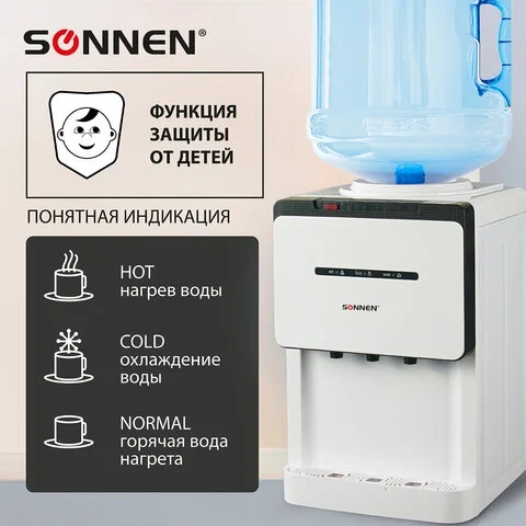 Кулер для воды Sonnen TSE-02 бело-черный, настольный, 505х305х305 мм