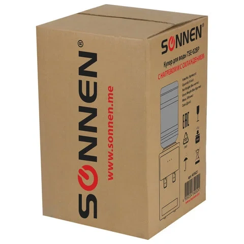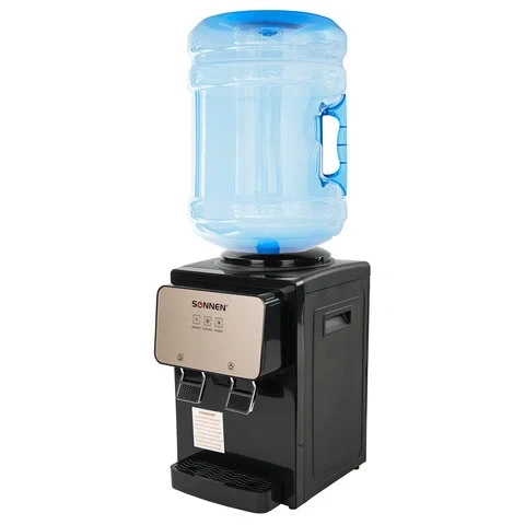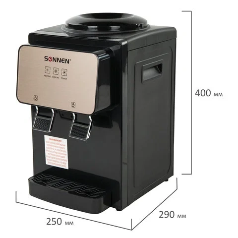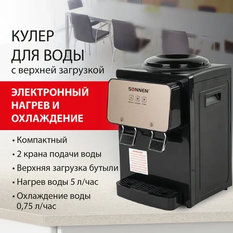 Кулер для воды SONNEN TSE-02BP, настольный, НАГРЕВ/ОХЛАЖДЕНИЕ ЭЛЕКТРОННОЕ, 2 крана, черный/бежевый,