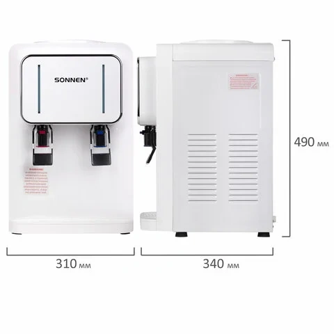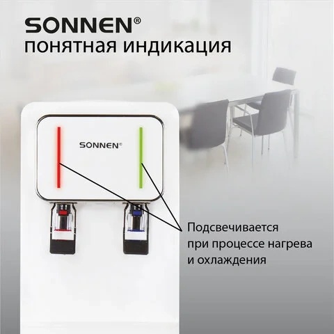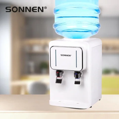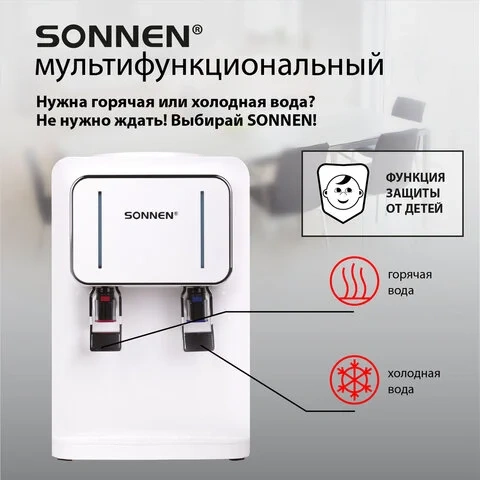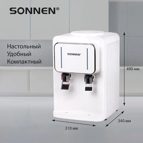 Кулер для воды SONNEN TSE-02W, настольный, НАГРЕВ/ОХЛАЖДЕНИЕ ЭЛЕКТРОННОЕ, 2 крана, белый, 456173