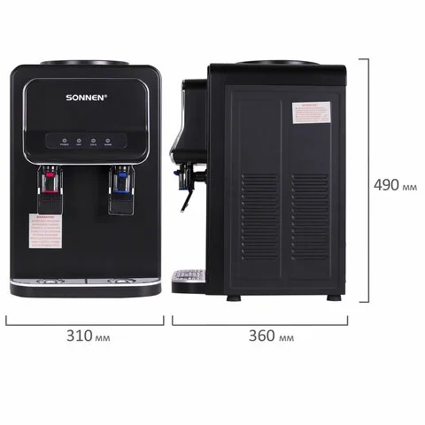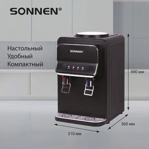 Кулер для воды SONNEN TSE-02WB, настольный, НАГРЕВ/ОХЛАЖДЕНИЕ ЭЛЕКТРОННОЕ, 2 крана, черный, 456174