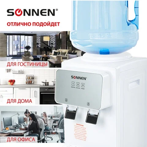 Кулер для воды SONNEN TSE-02WP, настольный, НАГРЕВ/ОХЛАЖДЕНИЕ ЭЛЕКТРОННОЕ, 2 крана, белый, 455622