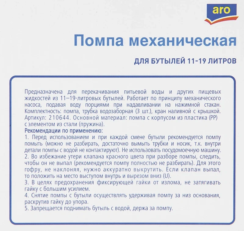 Помпа для воды AQUA WORK Дельфин Эко, механическая, для бутылей 12-19 л, 20071