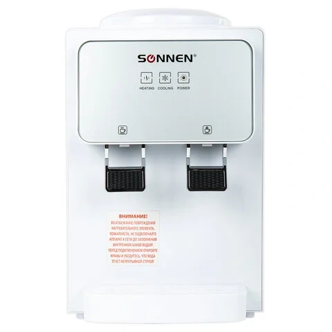 Кулер для воды SONNEN TSE-02WT, настольный, НАГРЕВ/ОХЛАЖДЕНИЕ ЭЛЕКТРОННОЕ, 2 крана, белый, 455413