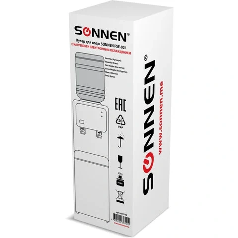 Кулер для воды SONNEN FSE-02SA, напольный, НАГРЕВ/ОХЛАЖДЕНИЕ ЭЛЕКТРОННОЕ, 2 крана, белый, 455414