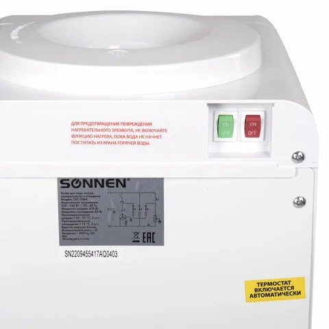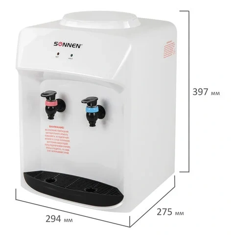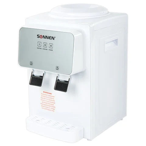 Кулер для воды SONNEN TSE-02WP, настольный, НАГРЕВ/ОХЛАЖДЕНИЕ ЭЛЕКТРОННОЕ, 2 крана, белый, 455622