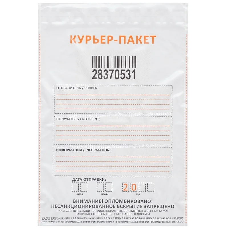 Курьер-пакет — упаковка, обеспечивающая сохранную перевозку и хранение ценного имущества, получила широкое распространение в среде транспортно-логистического обеспечения. Модельный ряд курьер-пакетов позволяет выбрать оптимальный вариант, под наиболее распространенные габариты курьерских отправлений. Запаковывание курьер-пакета происходит непосредственно перед отправкой, в Вашем присутствии, сотрудник логистического провайдера, либо Вы собственноручно закроете клапан, гарантируя тем самым сохранность отправления.