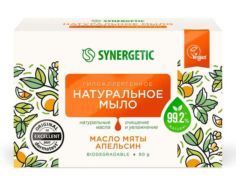 Мыло туалетное Synergetic Масло мяты и апельсин, 90г