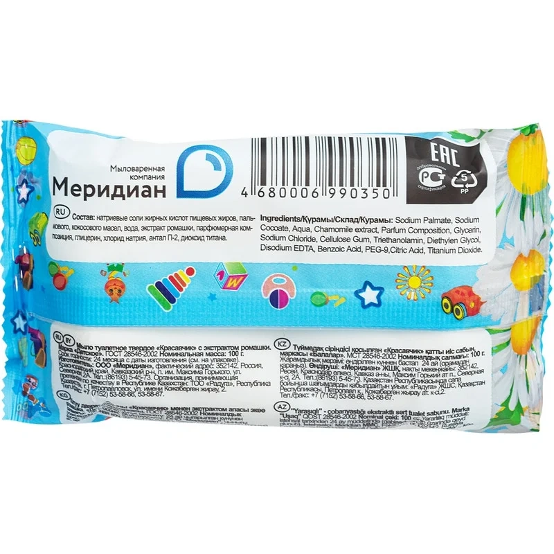 Мыло туалетное Меридиан 'Красавчик', детское, с ромашкой, 100г, флоу-пак