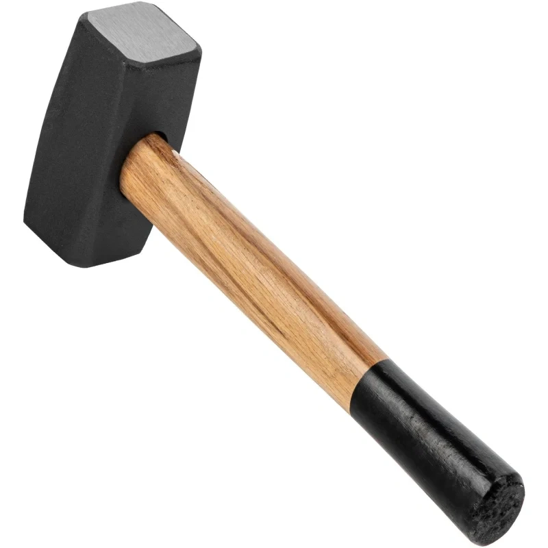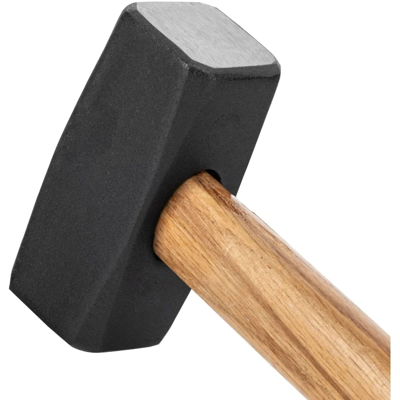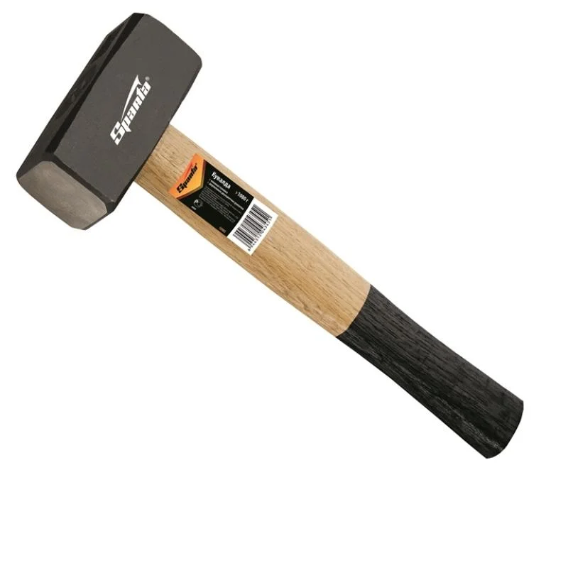 Головка кувалды кованая, изготовлена из стали 45, покрыта черным лаком. Бойку придана селективная закалка, обеспечивающая особую твердость и прочность (52 HRC). Боек слегка выпуклый и отшлифован с обеих сторон. Деревянная рукоятка покрыта лаком для предотвращения рассыхания. Вес: 1500 г.