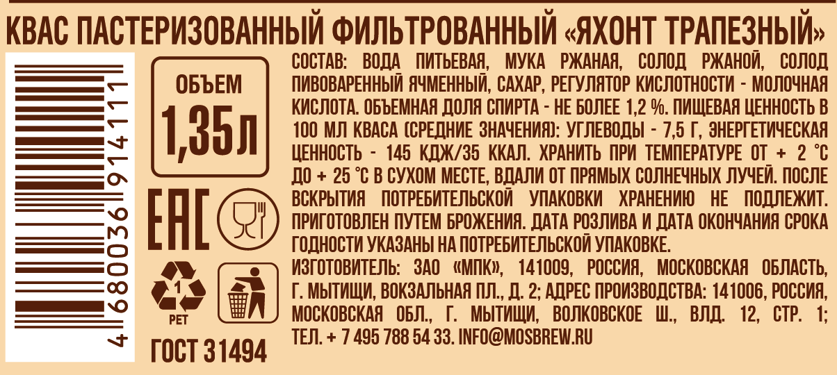 Отзывы о «Квас Очаково 500мл, ПЭТ»