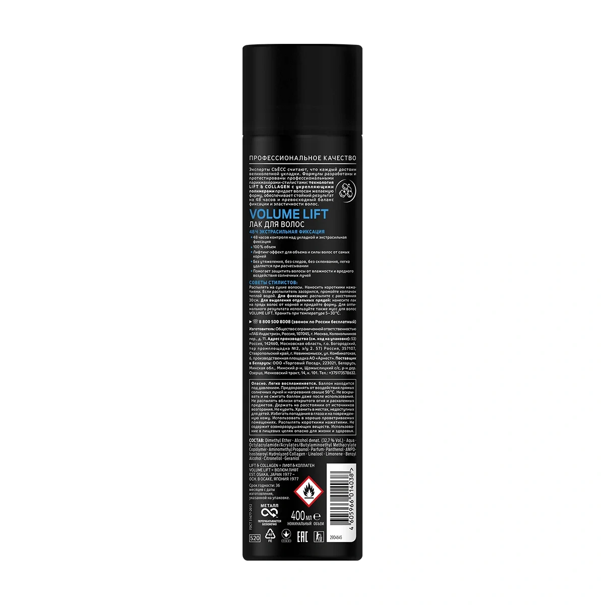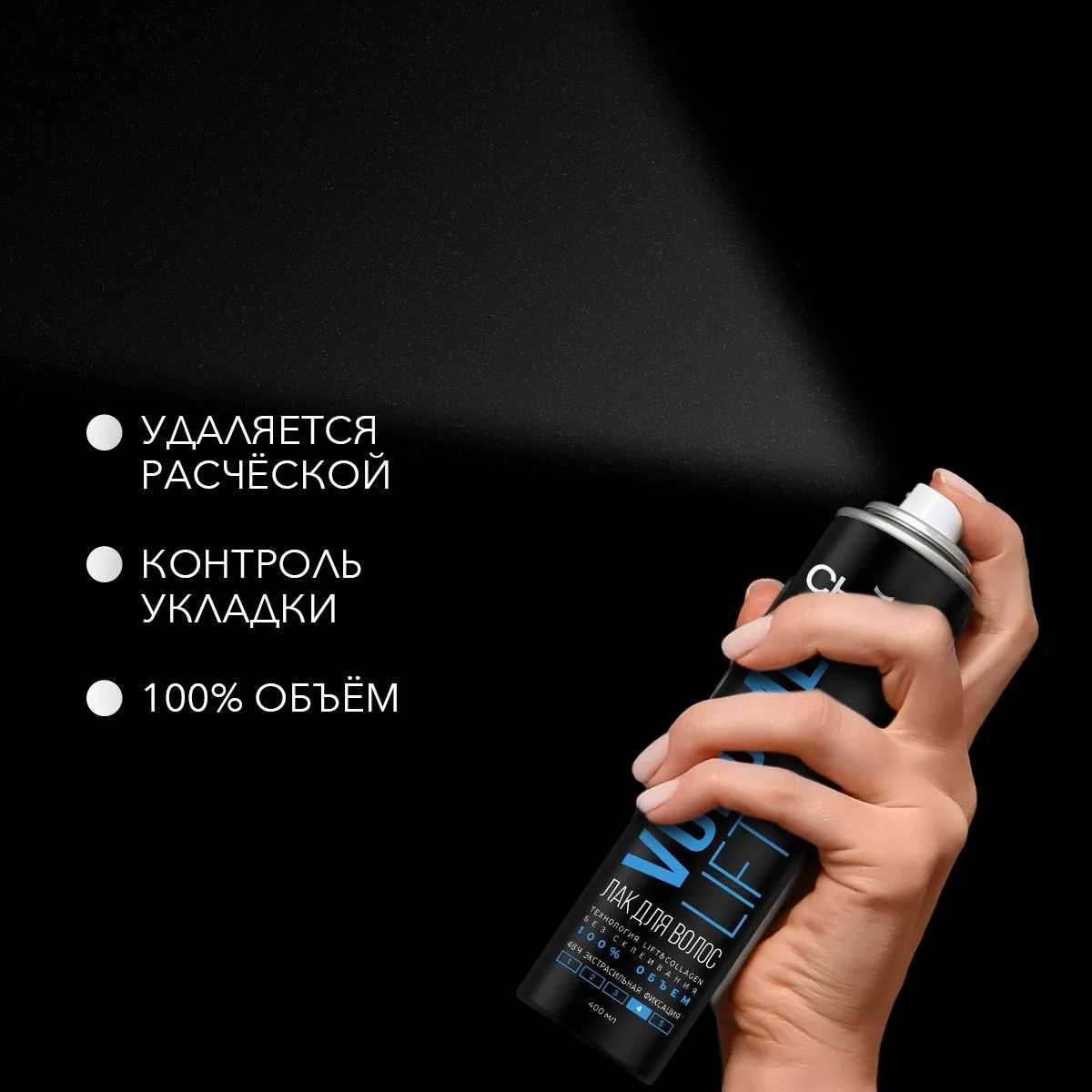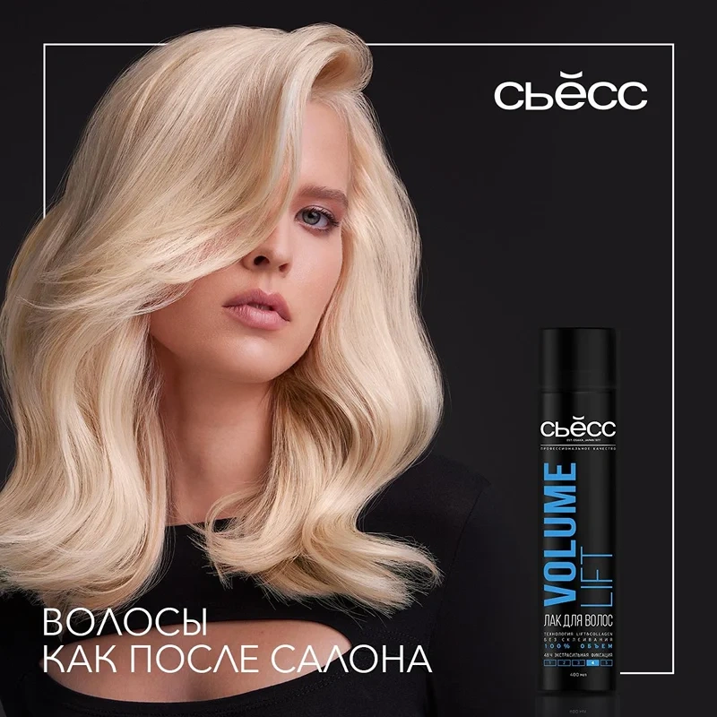 Эксперты Сьесс считают, что каждая женщина достойна великолепной укладки. Формулы лака для волос Сьесс разработаны и протестированы профессиональными парикмахерами-стилистами: технология lift & collagen с укрепляющими полимерами придает волосам желаемую форму, обеспечивает стойкий результат на 48 часов и превосходный баланс фиксации и эластичности волос. Стайлинг для волос. Для укладки и фиксации волос. 48 часов контроля над укладкой и экстрасильная фиксация. 100% воздушный объем. Лифтинг-эффект для объема и силы волос от самых корней. Без утяжеления, без следов, без склеивания, легко удаляется при расчесывании. Помогает защитить волосы от влажности и вредного воздействия солнечных лучей.
