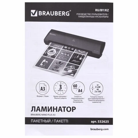 Ламинатор Brauberg NANO PLUS A3, 60-150мкм, 25 см/мин