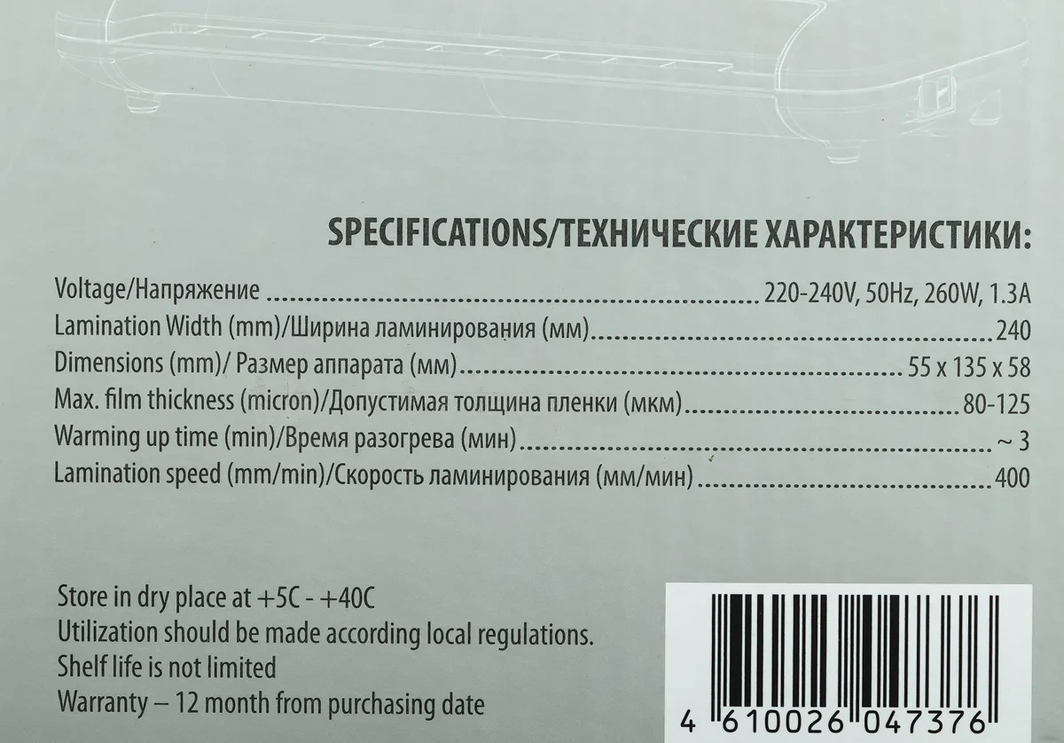 Ламинатор Cactus CS-LAB-A4400 A4, 80-125мкм, 40см/мин