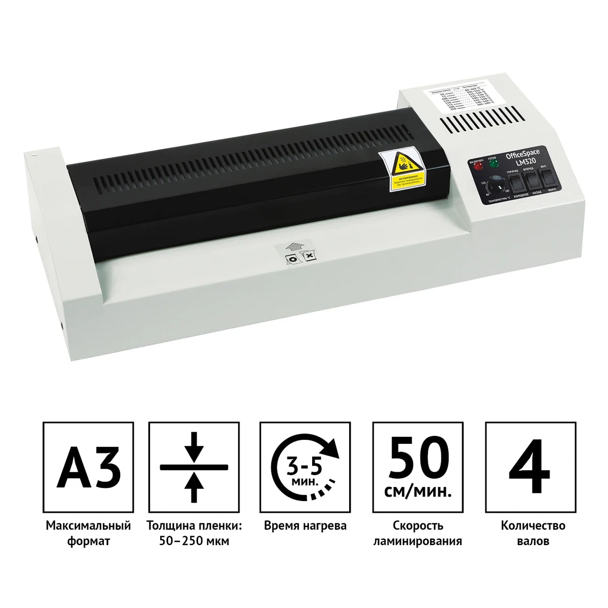Ламинатор Officespace LM320 А3, 50-250мкм, 4 вала, 50см/мин, метал. корпус