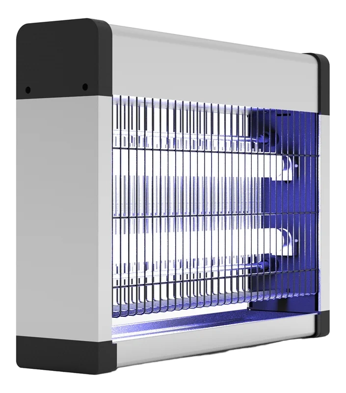 Предназначена для уничтожения электрическим током летающих насекомых в помещениях площадью до 80 квадратных метров: в жилых домах и производственных помещениях, в ресторанах и магазинах, на складах. В комплект электрической ловушки для мух входят 2 УФ лампы мощностью по 10 Вт, рассчитанные на 8000 часов работы. Излучение ламп не представляет опасности для людей и домашних животных. Оно привлекает насекомых в любое время суток, в том числе и при дневном свете. Насекомые попадают на металлическую решетку, находящуюся под высоким напряжением (2500 В), и погибают. Лампа уничтожитель насекомых EGO-02-20W заключена в прочный корпус из алюминиевого сплава с боковинами из ABS-пластика. Благодаря тому, что металлические решетки расположены с обеих сторон, площадь действия электромухобойки значительно увеличивается. Ультрафиолетовая мухоловка может быть размещена на стене, на прилавке или подвешена к потолку (в комплект входит цепь для подвешивания). Ультрафиолетовая, площадь действия 80 кв.м, напряжение на решетке 2500 В, в комплекте 2 лампы 10 Вт T8 BL, кабель питания 1,2 м с европейской вилкой, цепь для подвешивания.