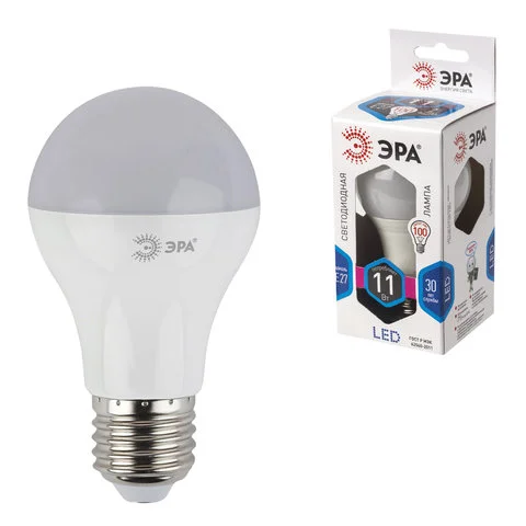Лампа светодиодная Эра 10Вт, Е27, 4000К, нейтральный белый свет, груша