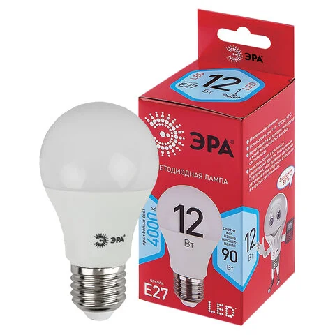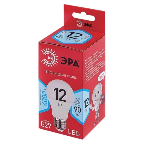 Бытовая светодиодная лампа ЭРА создаёт яркое ровное освещение и экономит до 90% электроэнергии по сравнению с лампой накаливания с аналогичным световым потоком. Светит белым светом. Используется в потолочных, настенных, настольных светильниках, люстрах.