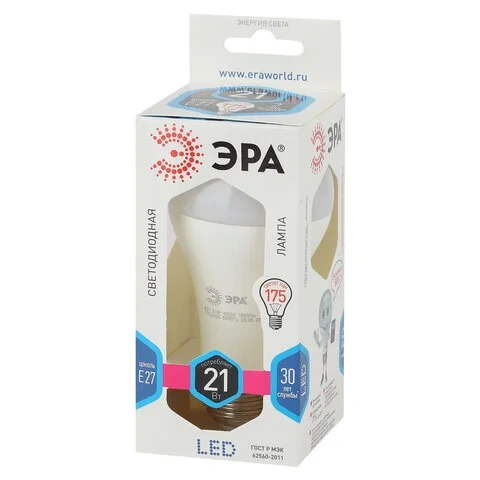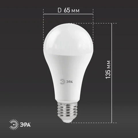 Лампа светодиодная ЭРА, 21 (160) Вт, цоколь E27, груша, нейтральный белый, 25000 ч, smd A65-21w-840-