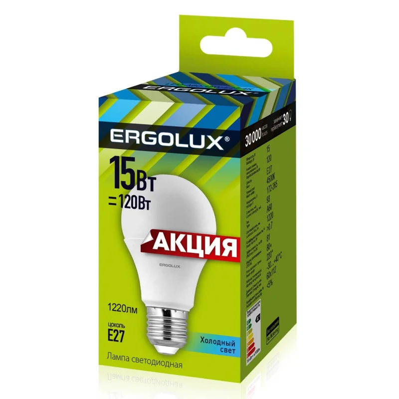 Лампа светодиодная Ergolux LED-A60P-15W-E27-4K,1