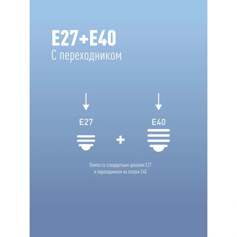 Длина лампы составляет 140 мм, диаметр — 140 мм. Лампа комплектуется переходником на E40.