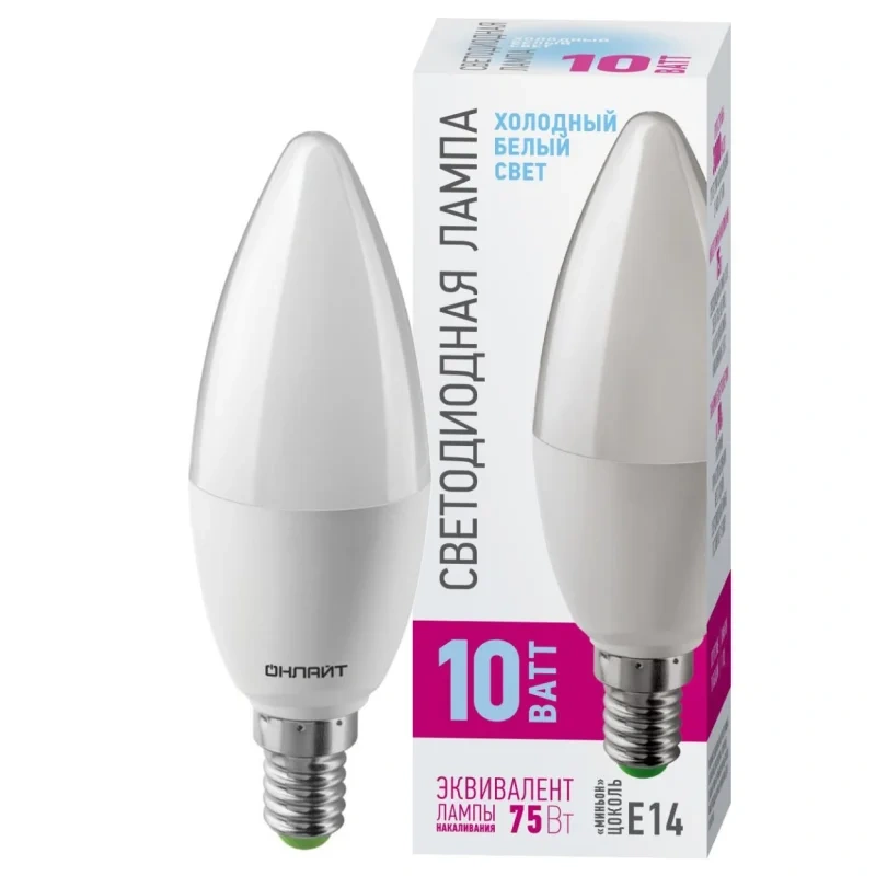 Лампа светодиодная ОНЛАЙТ OLL-C37-10-230-4K-E14-PROMO 10Вт Е14 4000К 82915