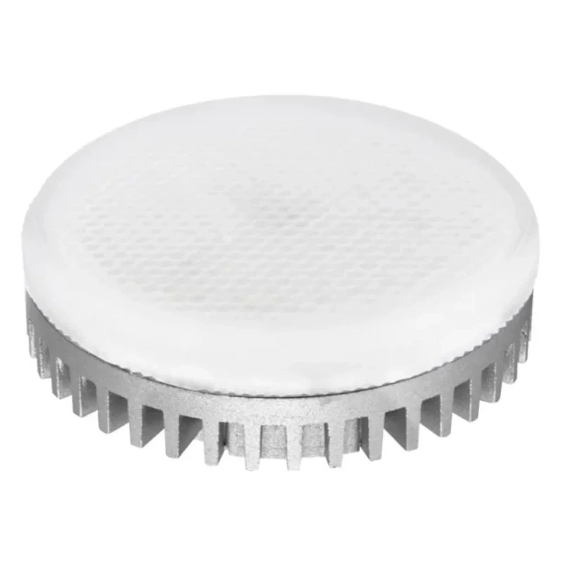 Светодиодная лампа мощностью 12 Вт с цоколем GX53 излучает холодный белый свет (5000 К). Лампа имеет колбу типа GX и световой поток 1040 Лм, что соответствует яркости 100 Вт лампы накаливания.