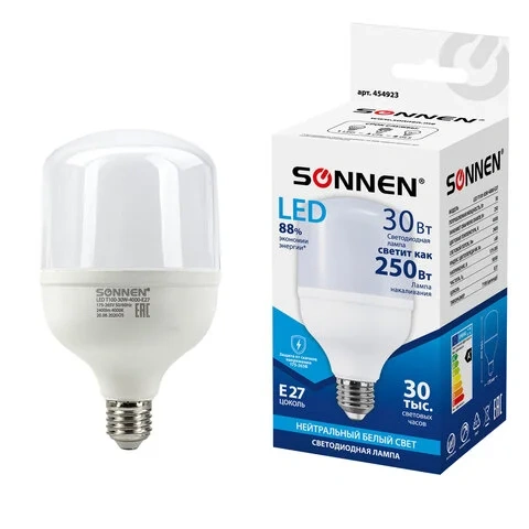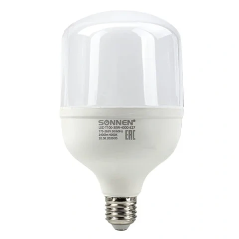 Лампа светодиодная SONNEN, 30 (250) Вт, цоколь Е27, цилиндр, нейтральный белый, 30000 ч, LED Т100-30