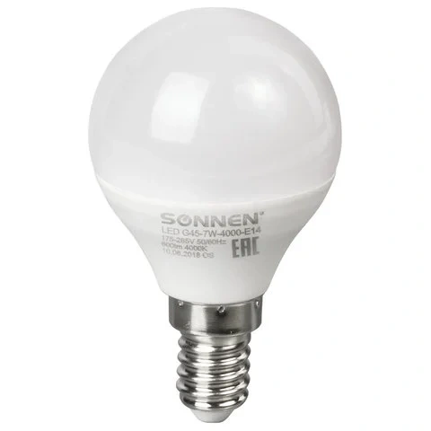 Лампа светодиодная Sonnen 7Вт, E14, 4000K, холодный белый свет, шар