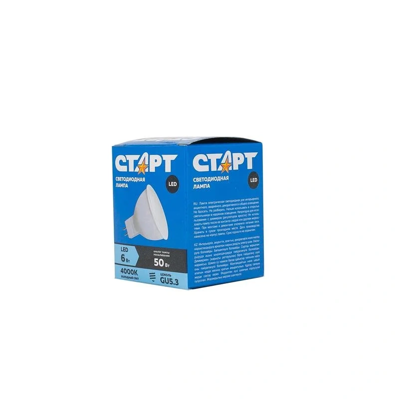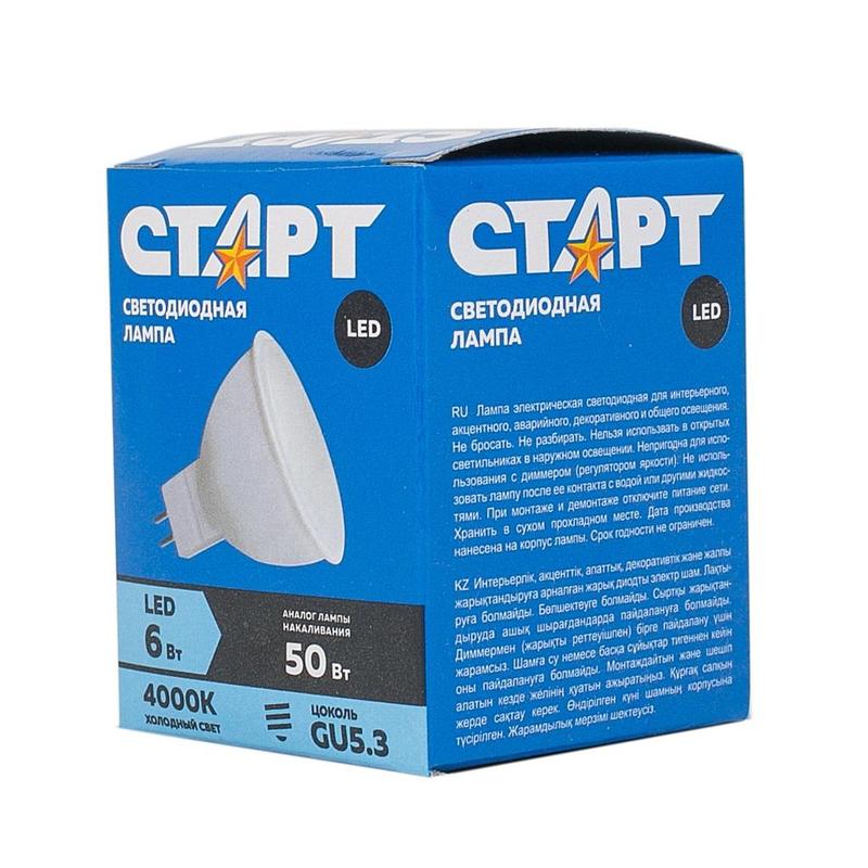 Лампа светодиодная Старт 6Вт, GU5.3, холодный белый свет, рефлектор