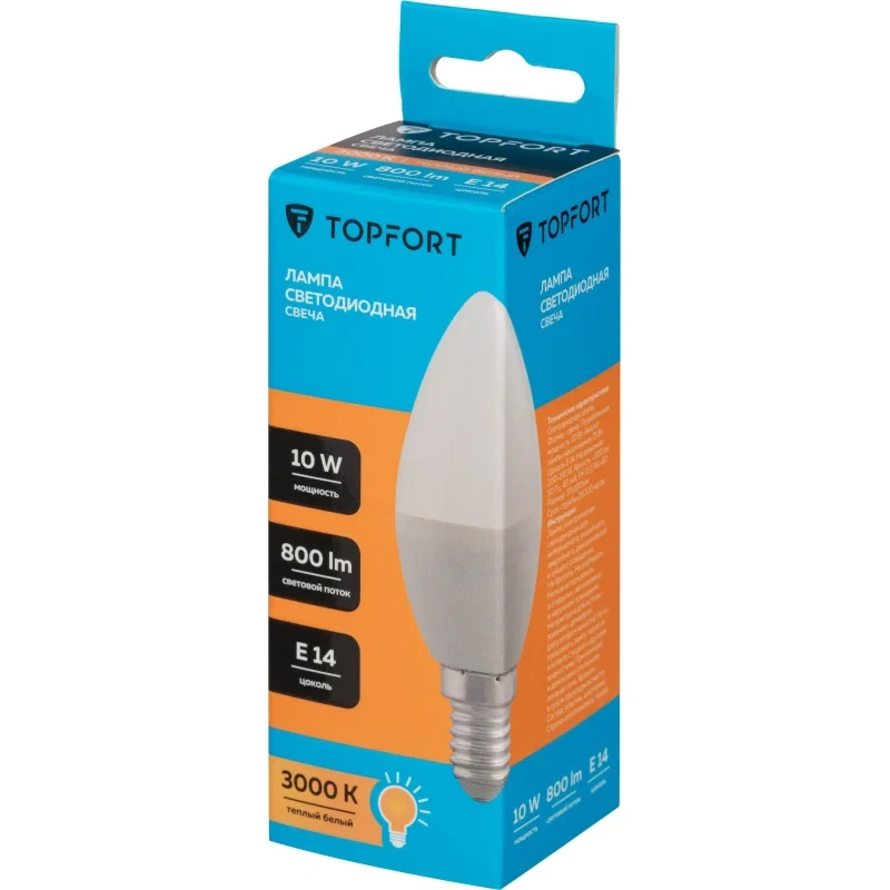 Лампа светодиодная Topfort E14 10W 3000K свеча