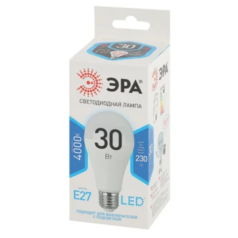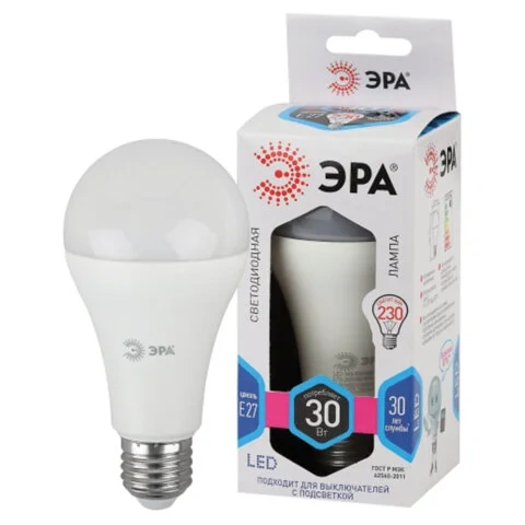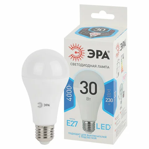 Лампа светодиодная ЭРА STD, 30 (230) Вт, цоколь E27, груша, нейтральный белый свет, 35000 ч., LED A6